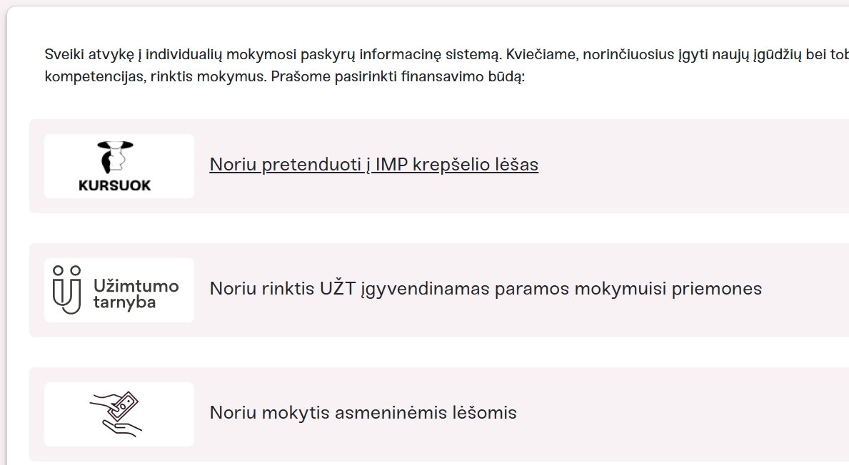 Pasirinkite „Noriu pretenduoti į IMP krepšelio lėšas“